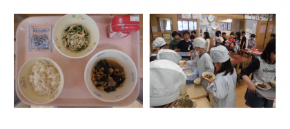 各教室では,給食当番が準備をしますが,テキパキと丁寧に配食している姿がたくさん見られました。均等に食器に入れることもできています。これからもおいしく食べるために,安全に丁寧に準備をすることを心掛けてほしいと思います。