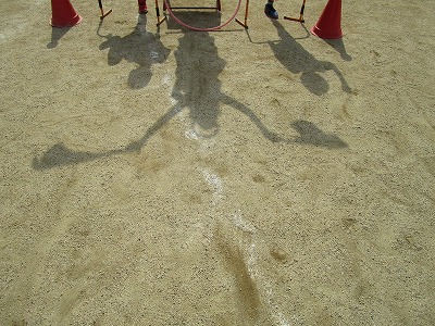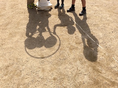 体育倉庫の道具を使ったのですが,どれを使おうか友達と楽しそうに相談しながら活動していました。