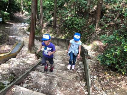 山城総合運動公園の「冒険の森」には、長いすべり台があります。子どもたちは目を輝かせていました。