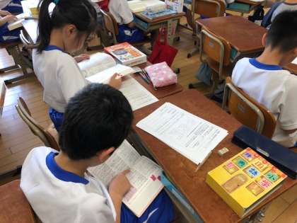 国語辞典はブックバックにいれておいて,分からない言葉や,初めてきく言葉が出てきた時にはすぐに調べられるようにします。
