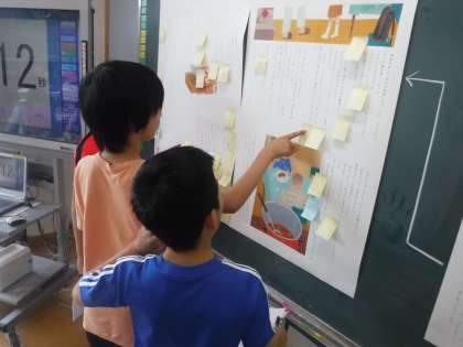 子どもたちは,登場人物の言動に対する疑問や自分がおすすめしたいと思うところについてたくさん交流を重ねています。