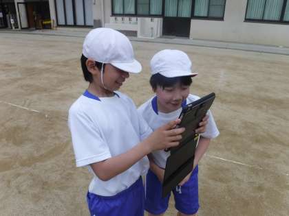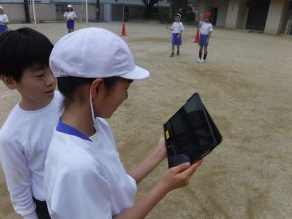 今回は,タブレットを使用して自分のフォームなどを確認しながら練習をしました。
