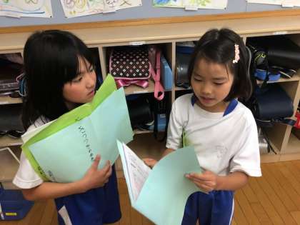 音読発表会に向けて,場面や登場人物の様子が伝わるような音読の工夫を考えて,友達と交流しながら練習しています。