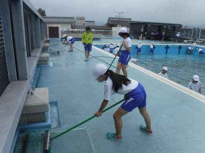 6年生の子どもたちが,水泳学習ができるように一生懸命にプールをきれいにしてくれました。