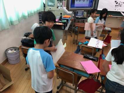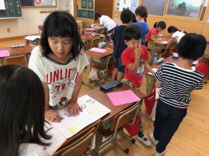 「こまを楽しむ」を読んで気が付いたことを付箋に書き,友達と交流しました。