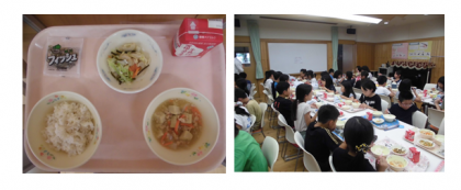 今日は,高野どうふにたっぷりのうま味と煮汁がしみこんだ「高野どうふのそぼろ煮」がでました。ランチルームでは,4年生が学年で交流給食をしました。少ない時間でしたが,楽しい話をしながら会食することができました。これからも食事のマナーに気をつけながら,楽しく会食できるといいですね。