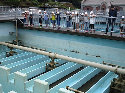 浄水場の仕組みを聞いた後は,実際に見学しました。