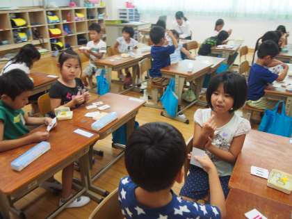 子どもたちは,自分の考えた解き方で,20までの数のたし算やひき算に取り組んでいました。