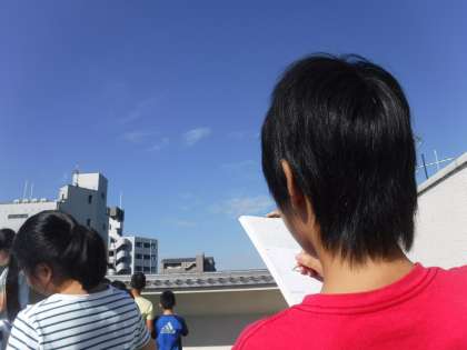台風が過ぎ,気持ちの良い秋晴れ。理科の学習では,月の観察をしました。