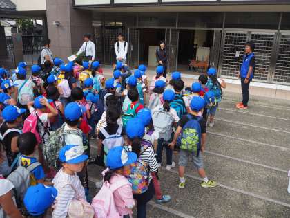 小学校に帰ってきました。引率していただいた先生方に,大きな声で