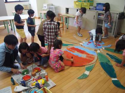 渉成レジデンスの杉本先生と一緒に色塗りを楽しみました。