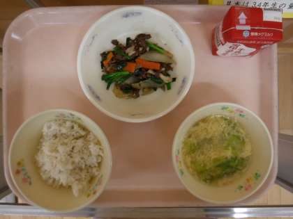 今日は韓国・朝鮮の料理である「プルコギ」がでました。にらやまいたけなどの野菜と牛肉のうま味が合わさり,ごはんがどんどん進む献立でおいしく食べることができました。