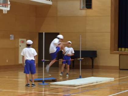 走り高とびに挑戦しました。自分が跳べる高さで何回か挑戦しました。
