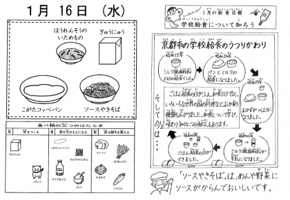 1月の給食目標は「学校給食について知ろう」です。給食カレンダーでは,京都市の学校給食のうつりかわりについて紹介しました。