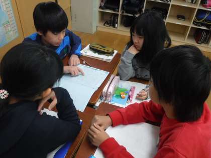 子どもたちは,自分でノートに考えをまとめたり,グループで話し合ったりしながら学習を進めています。
