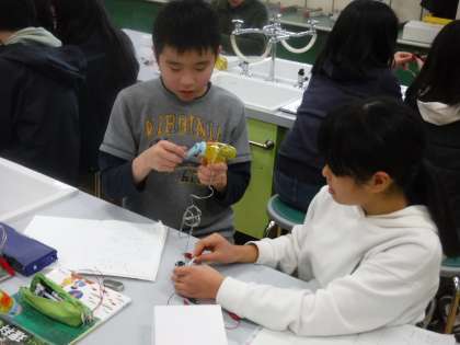 手回し発電機などを使いながら,電気の性質について学習を進めていきます。