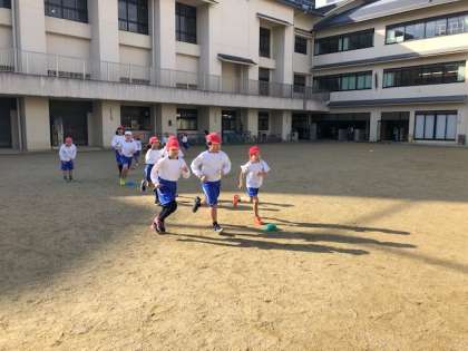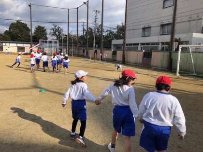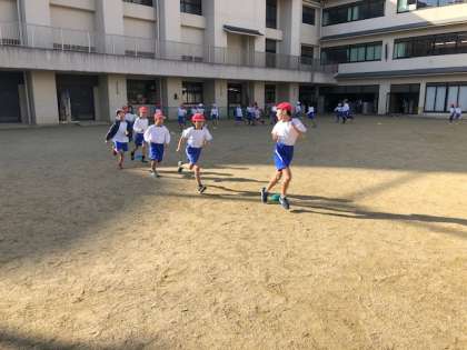 走っている友達に「がんばれ」と声をかけたり,一緒に走って応援したりする姿もたくさん見られます。