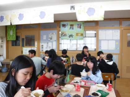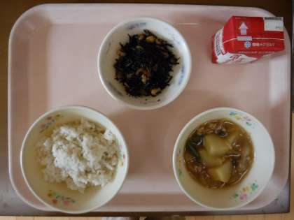 今日はホクホクのじゃがいもと鶏ひき肉がよく合う「じゃがいものそぼろ煮」が出ました。少しとろっとしているので,食べやすくごはんが進みます。ひじき豆も一緒においしそうに食べていました。6年生の教室では,笑い声が絶えず,楽しそうに食べている姿が見られました。小学校での給食は後1か月ほどとなりましたが,友達と楽しく会食できる時間を大切にしてほしいと思います。