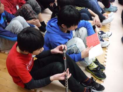 6年生の音楽の学習の時間に,「雅楽」の演奏をしていただきました。