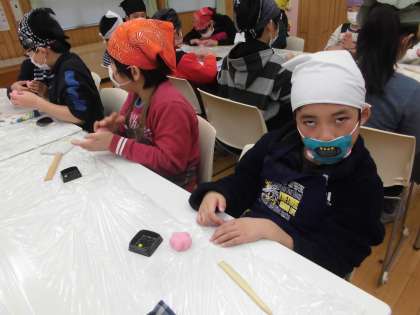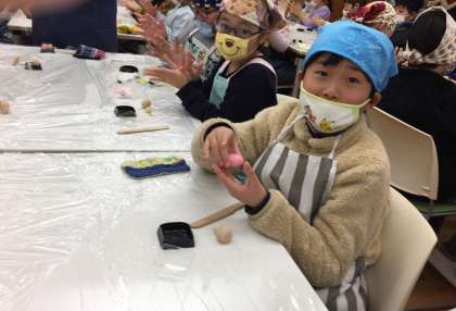 みんな,あんこを丸める手の感触を確かめながら楽しんで作ることができました。
