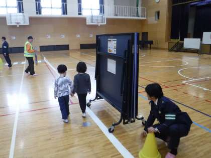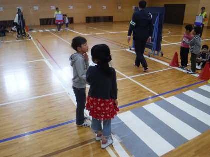 道路や交差点を横断する時,車が通る道路を歩く時・・・など実際に体験もしながら,みんなで確かめることができました。