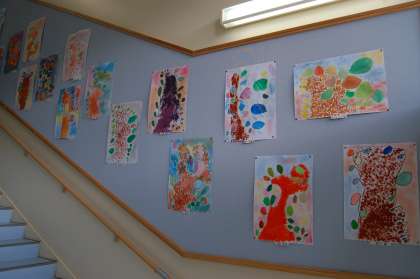 それぞれの木の実に,絵の具を工夫して混ぜ,すべて違う色をつけました。