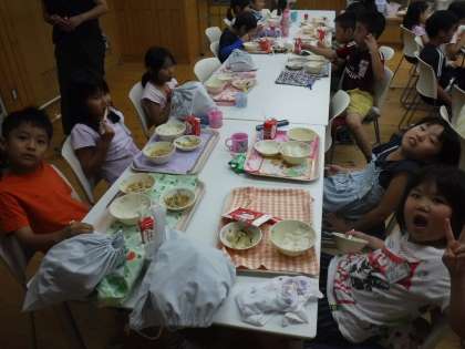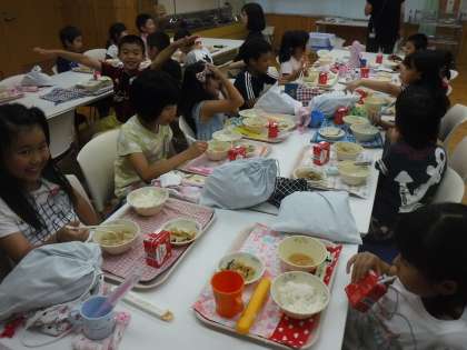 本日,ランチルームで1組と2組で給食を食べました。いつもと違う友達と給食を食べる新鮮さを味わい,楽しく給食を食べていました。