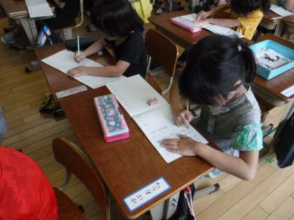 ノートも使いながら,式や答えを書くことや考え方を図で表すことを学習しています。初めてのノートに一生懸命頑張って取り組んでいます。