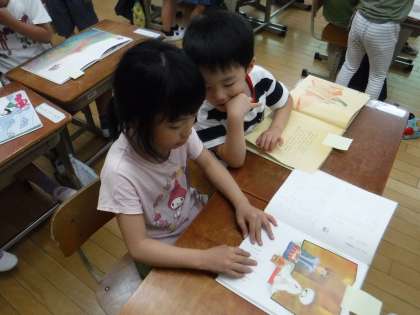 「うらしまたろうが,竜宮城に行くところが不思議で大好きです。」,「ももたろうが,鬼を退治するところがいいなと思いました。」と,子どもたちは自分なりに考えた理由と大好きな場面を話すことができました。