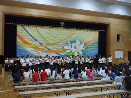 式典の中においても,全校合唱で,みんなの歌声が一つになったとき,吹奏楽の演奏に心震え,感動を共にしたとき,スクールスローガンである「夢に挑戦!いっしょに感動!すてきな笑顔!」を体現していることを実感いたしました。