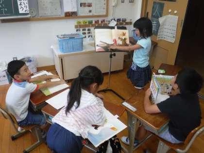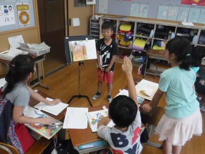 自分のお気に入りの本の大好きな場面とその理由,想像した会話などを音読と一緒に伝えました。お互いに感想を伝え合い,楽しそうに発表に取り組むことができました。