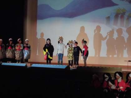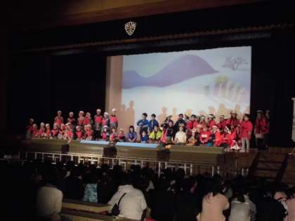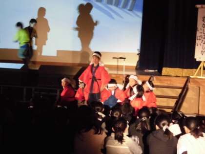 1年生は国語で学習した昔ばなしで「むかしばなしが いっぱい」を披露しました。全身を使った元気いっぱいの演技で会場をわかせました。