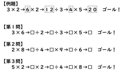 例題のようにかけ算,わり算をして□に入る数を考えていき,