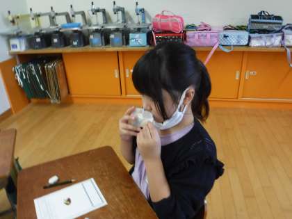今日は,生八つ橋を見たり食べたりして気付いたことや疑問に思ったことを話しました。