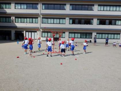 1年生は,50M走と玉入れの練習を頑張っています。