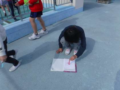 今日は,1時間おきに4階に上がってかげの動きを観察しました。