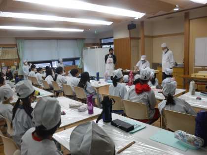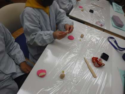 先週に続き,今週も総合的な学習の時間「すてきな生き方探究」の1つとして「和菓子体験」をさせていただきました。まず,子どもたちは初めて見る美しい色の餡に驚いている様子でした。次に,職人の方による実演が始まりました。あっという間にとても美しい桜やイチョウなどの季節の花が完成していき,子どもたちの目はその手にくぎ付けになっていました。