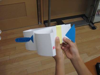 紙を上手に貼り合わせて,ぴょこぴょこ動くおもちゃを作ろう。