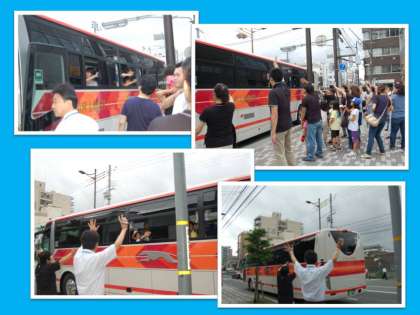 子どもたちのとびっきりの笑顔で,5泊6日の長期宿泊学習に,いざ出発!