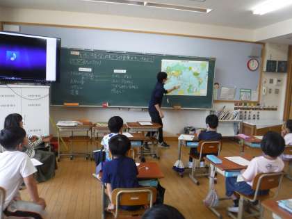 連合教職員大学から実習に来ている田中先生が,音楽の鑑賞の授業を行いました。