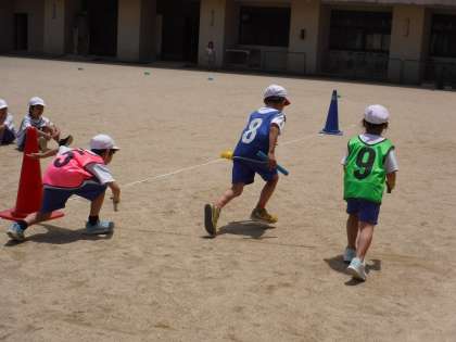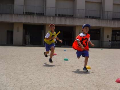 体育の『リレーあそび』の最後は学年リレーを行いました。