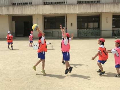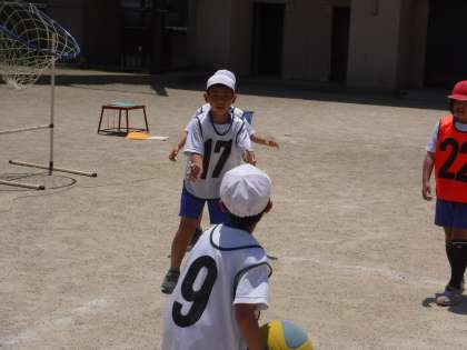 ボールを使っての競技でもある「パスゲーム」を行っています。