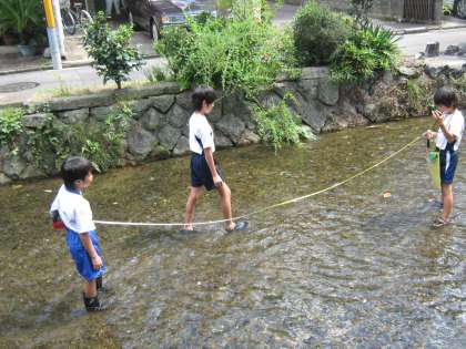 校区を流れる高瀬川について,一人ひとりが一生懸命調べています.