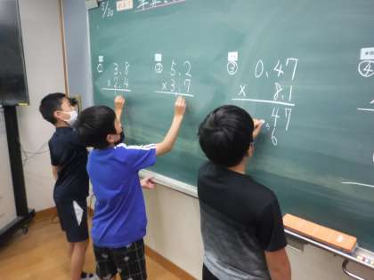 算数では,小数のかけ算の計算の仕方や意味について学んでいます。