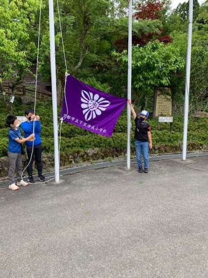 入所式では校歌に合わせて校旗を掲揚しました。