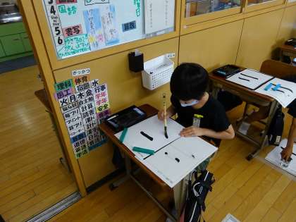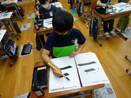 慣れない筆にみんな苦戦していましたが集中して学習することができていました。