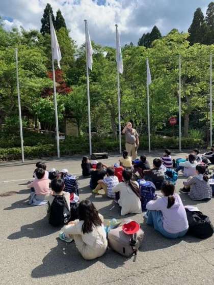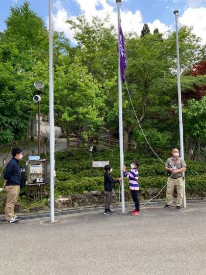 校歌に合わせて下京渉成小学校の旗が降ろされます。