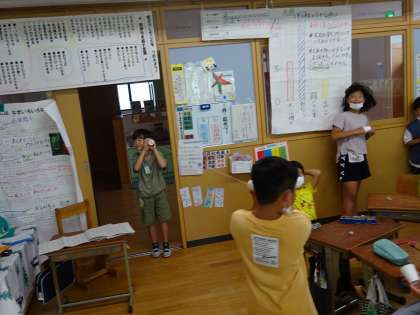 理科の「音のふしぎ」の学習では、音がなぜ伝わるのかを調べるために糸電話を使って会話をし、気付いたことを交流しました。