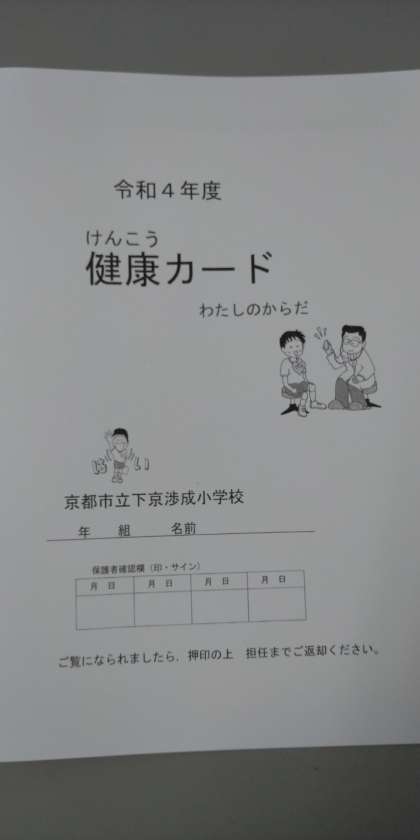 1学期の健康診断や身体計測が終わりましたので、「健康カード」を配っております。