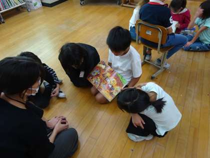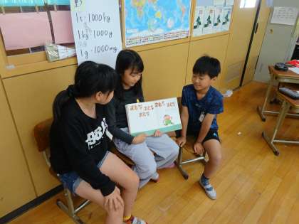 1年生への読み聞かせに向けて練習を始めています。聞きやすく話せているかな?顔の向きは大丈夫かな?友だちとアドバイスをしながら進めています。